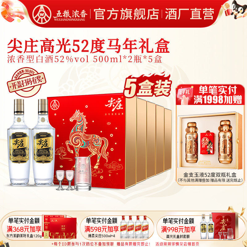 【过年送礼】尖庄高光52度500ml*2瓶*5盒马年礼盒 五粮浓香型白酒
