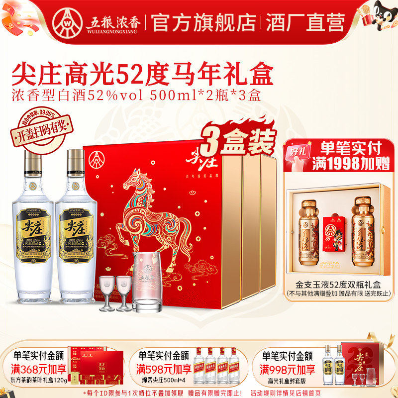 【过年送礼】尖庄高光52度500ml*2瓶*3盒 马年礼盒五粮浓香型白酒