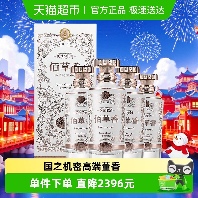 国密董酒佰草香54度500ml*4整箱董香型纯粮固态过年送礼高档白酒
