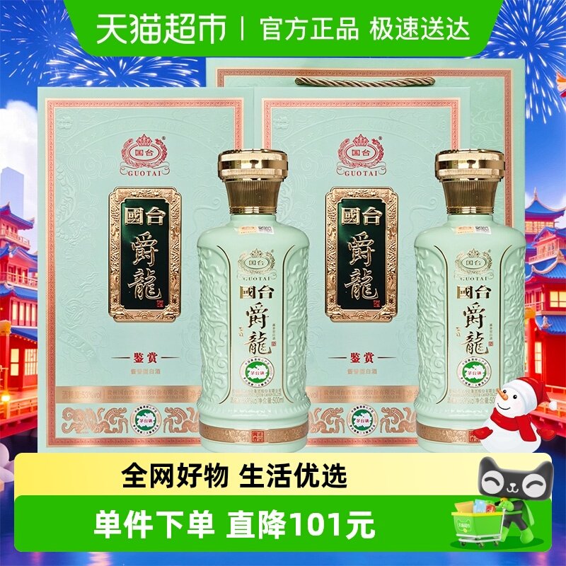 国台爵龙酒53度500ml*2瓶酱香型白酒礼盒配礼袋收藏宴请过年送礼