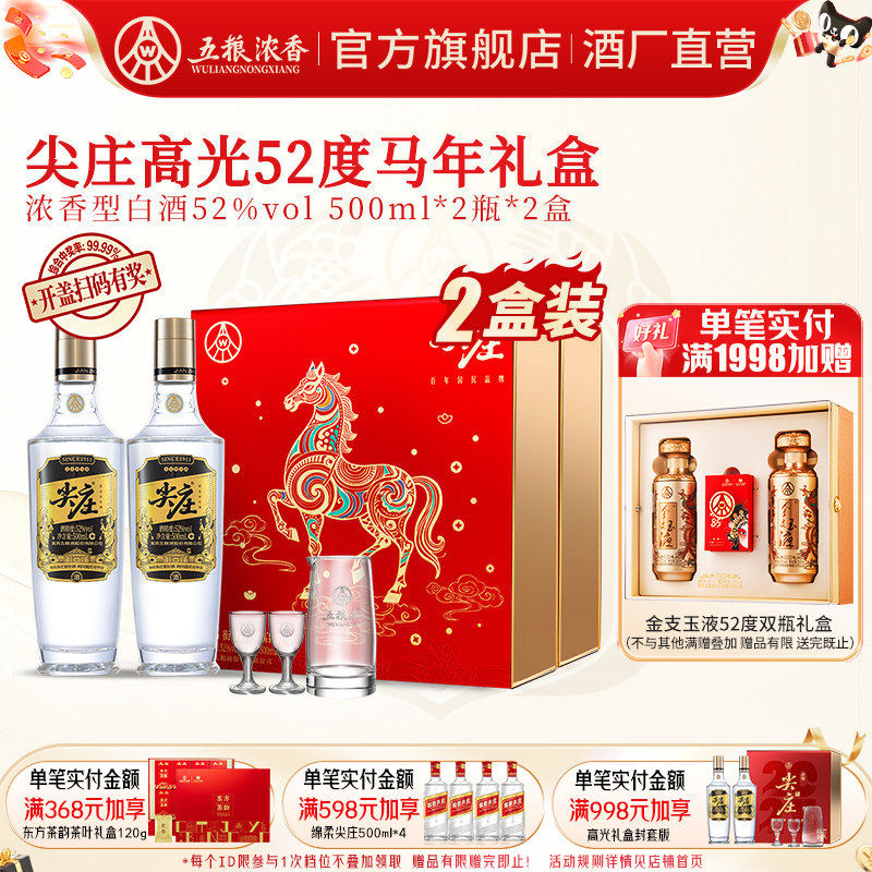 【过年送礼】尖庄高光52度500ml*2瓶 马年礼盒五粮浓香型白酒节日
