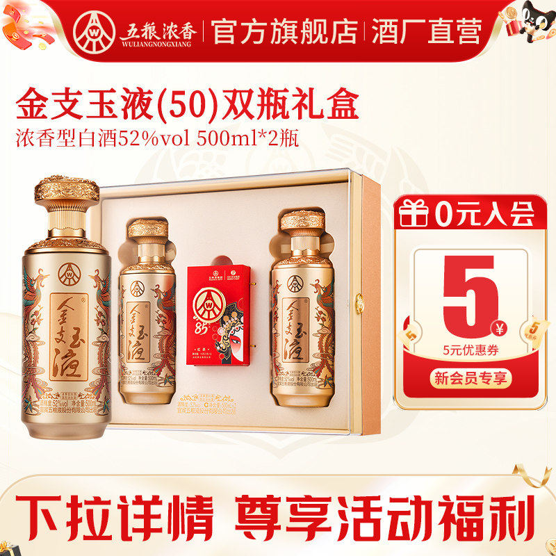 【过年送礼】金支玉液52度500ml*2瓶礼盒 浓香型白酒节日送礼用酒