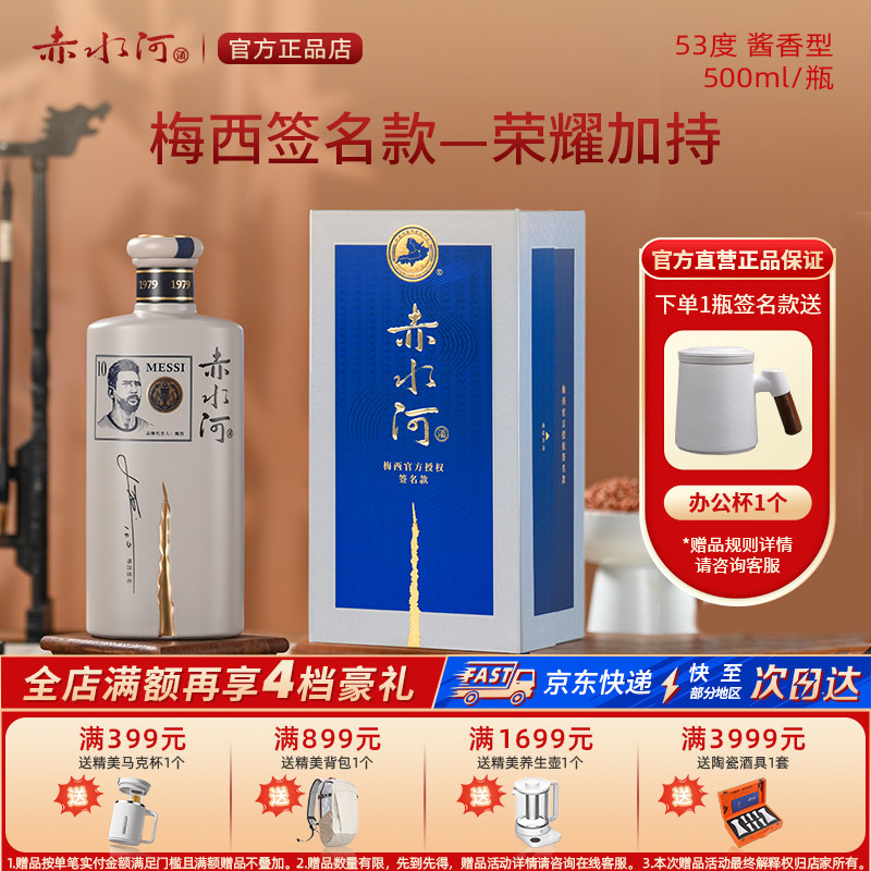 【官方正品】梅西签名53度贵州赤水河纯粮坤沙酱香型白酒过年送礼