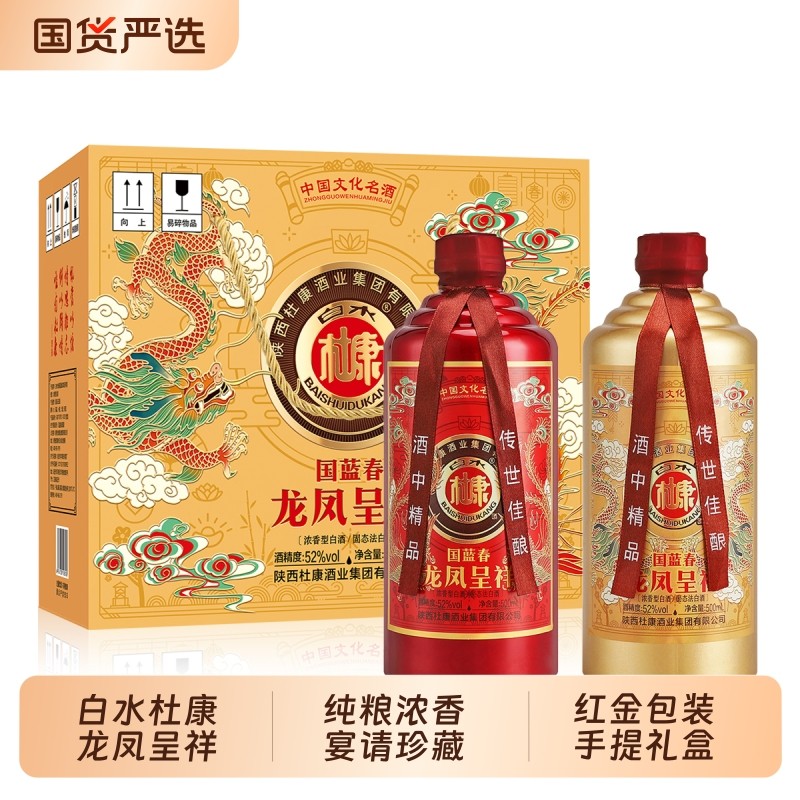 白水杜康龙凤呈祥礼盒白酒52度浓香节日送礼过年500ml送长辈宴会