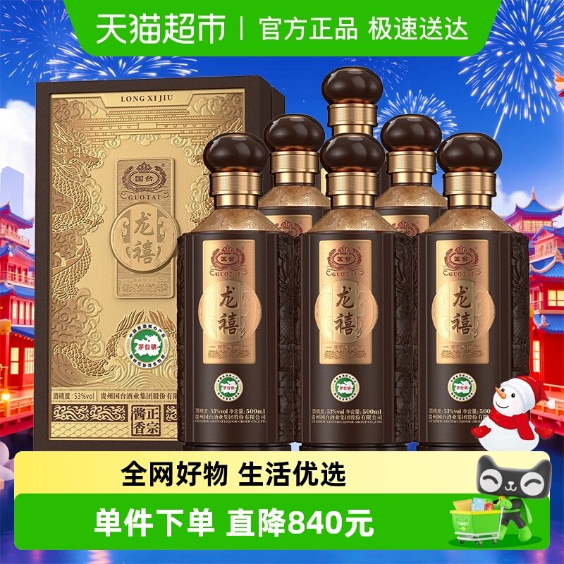 国台龙禧酒53度500ml*6瓶酱香型白酒整箱高端酒过年送礼礼盒收藏