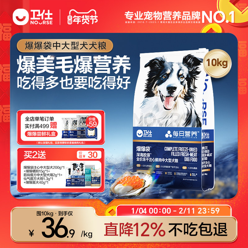 [新品]卫仕爆爆袋中大型犬狗粮美毛金毛边牧鸭肉梨全阶段通用犬粮
