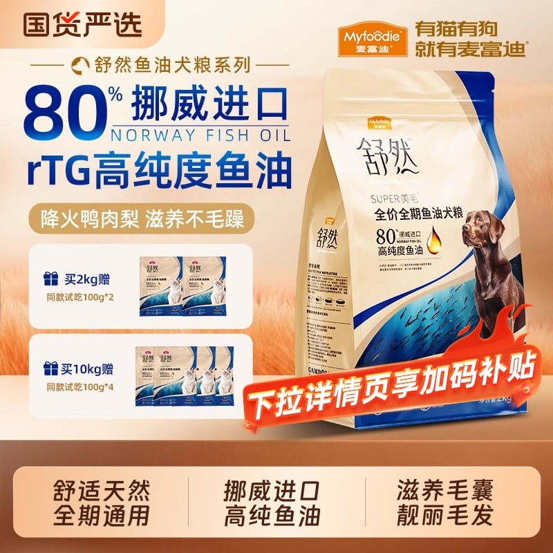 麦富迪舒然鱼油狗粮鸭肉梨鸡肉幼犬通用型泰迪金毛柯基美毛成犬粮