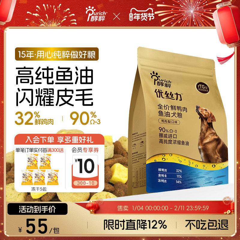 醇粹优丝力鱼油狗粮鸭肉梨全价成幼犬通用型泰迪比熊金毛美毛全期