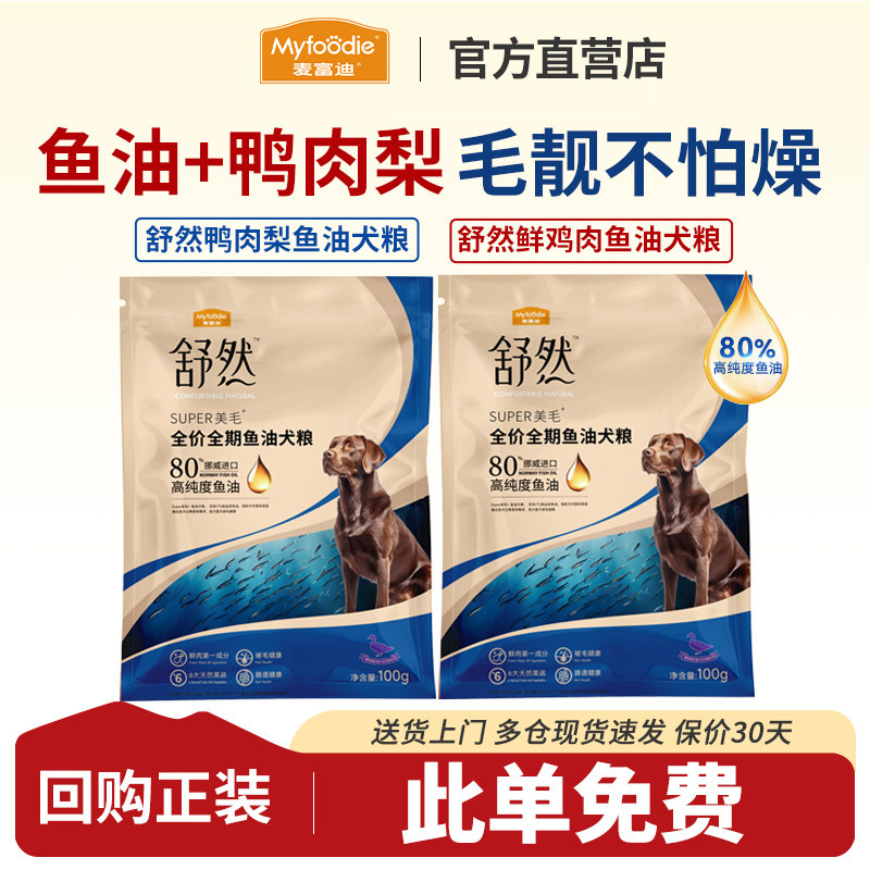 【U先试用】麦富迪狗粮舒然鱼油美毛成幼犬金毛全期通用犬粮200g