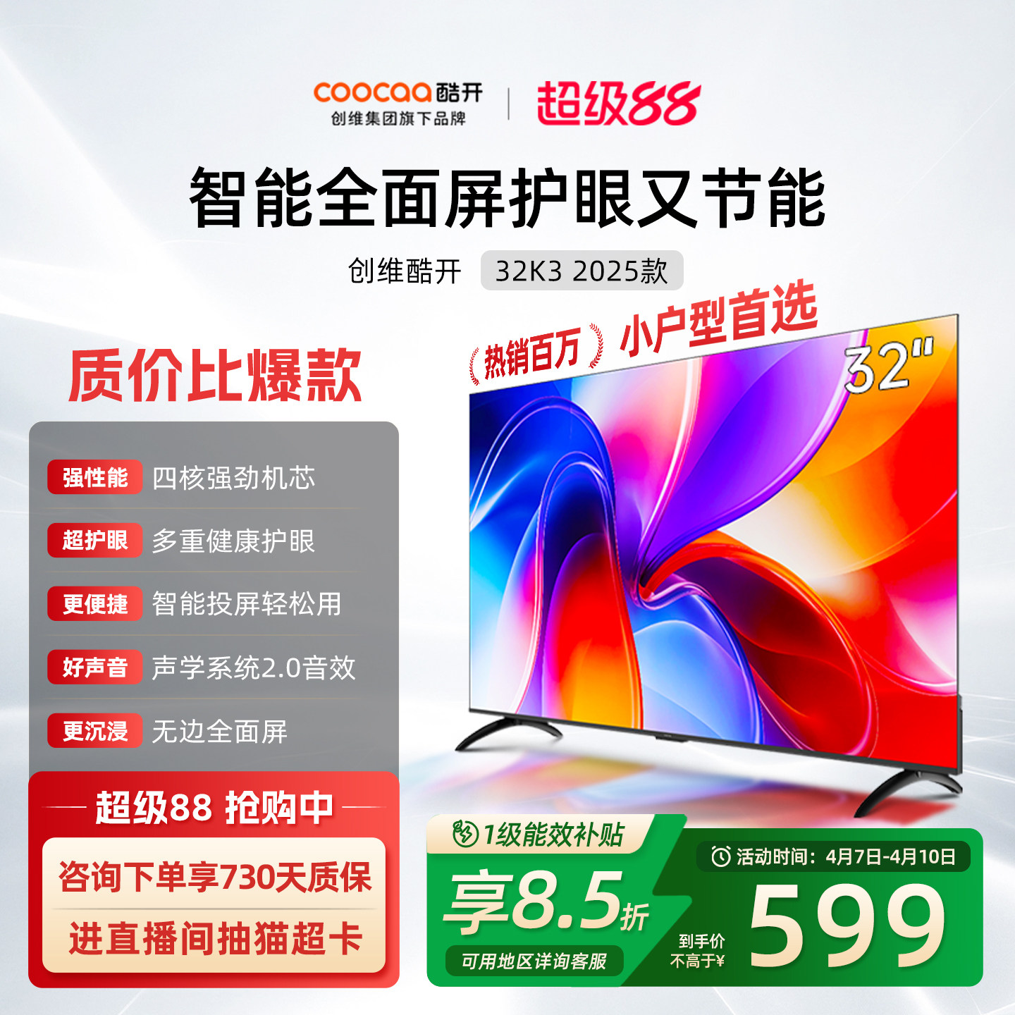 创维酷开K3 32英寸高清家用电视机液晶屏幕彩电旗舰店正品32P3F