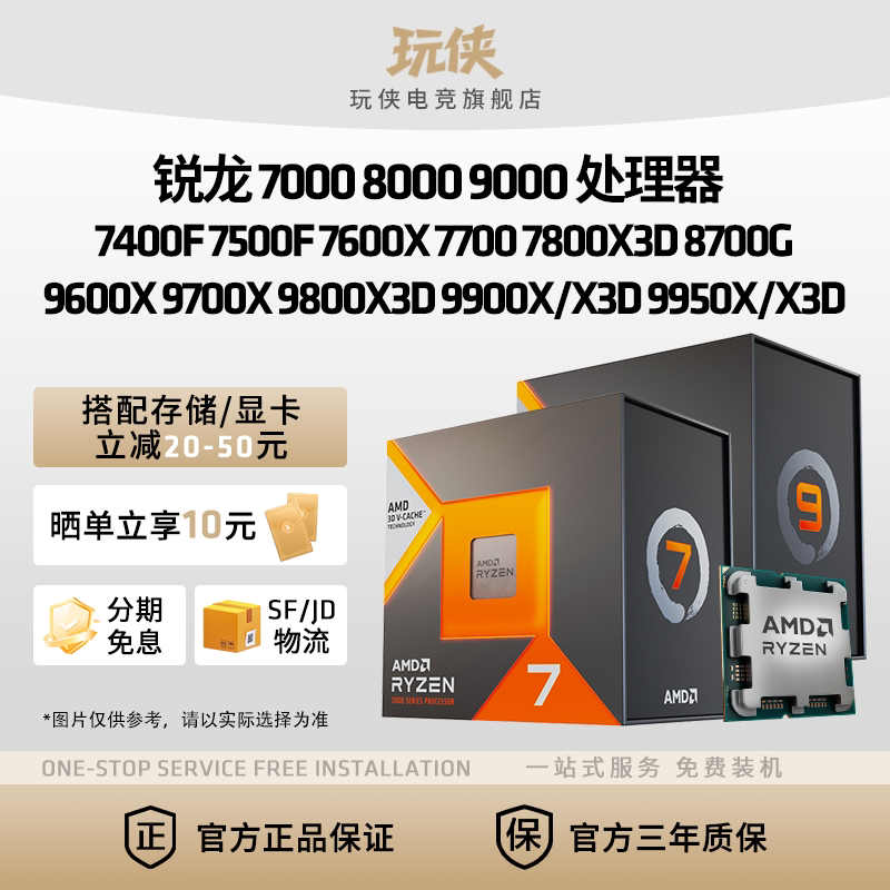 AMD锐龙7500F7800X3D9600X/9700X/9800X3D/9850X3D/9950X3D处理器