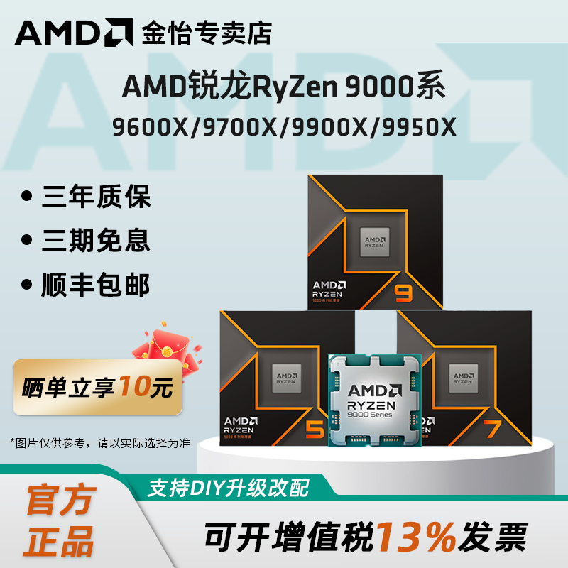 AMD锐龙Ryzen5/7/9处理器9600X/9700X/9800X3D/9900X9950X盒装CPU