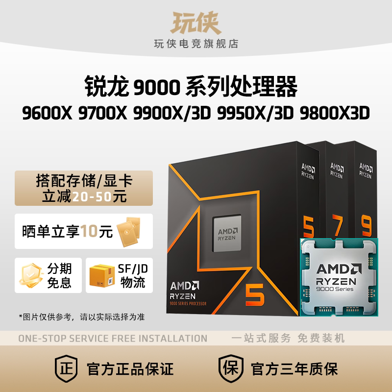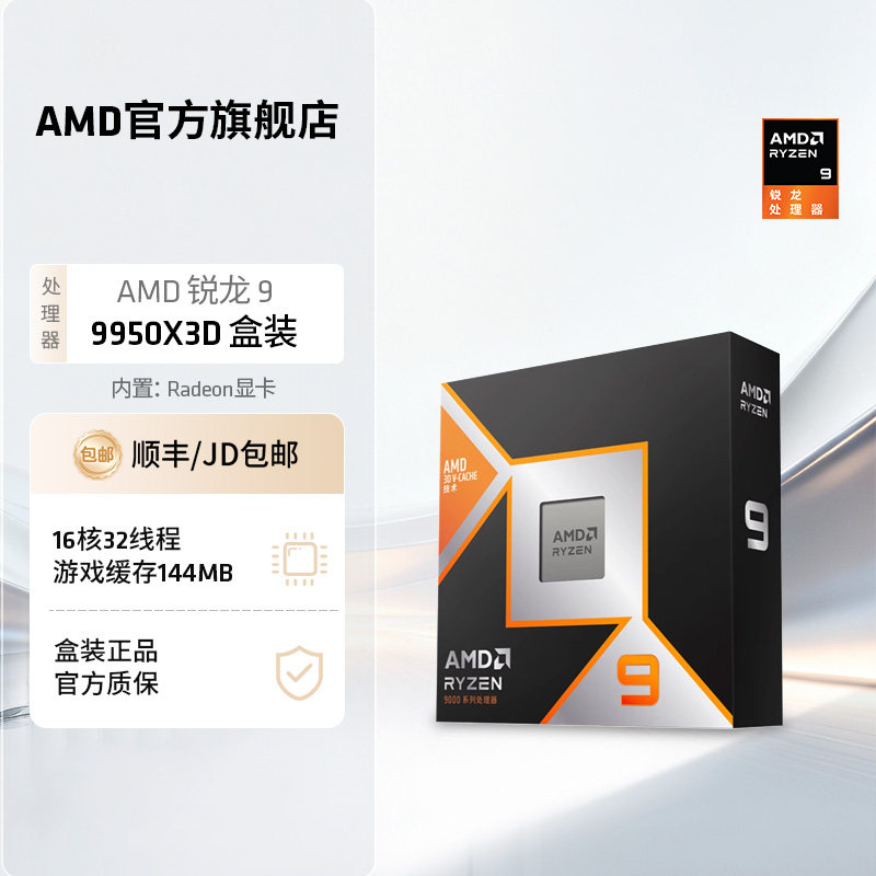 AMD锐龙R9 9950X3D 9900X3D全新盒装CPU电脑处理器电竞游戏办公