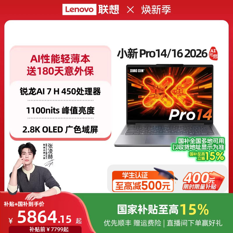 【国家补贴】联想小新Pro14/Pro16/Pro14GT/Pro16GT 锐龙标压处理器 大学生笔记本 游戏办公轻薄本笔记本电脑