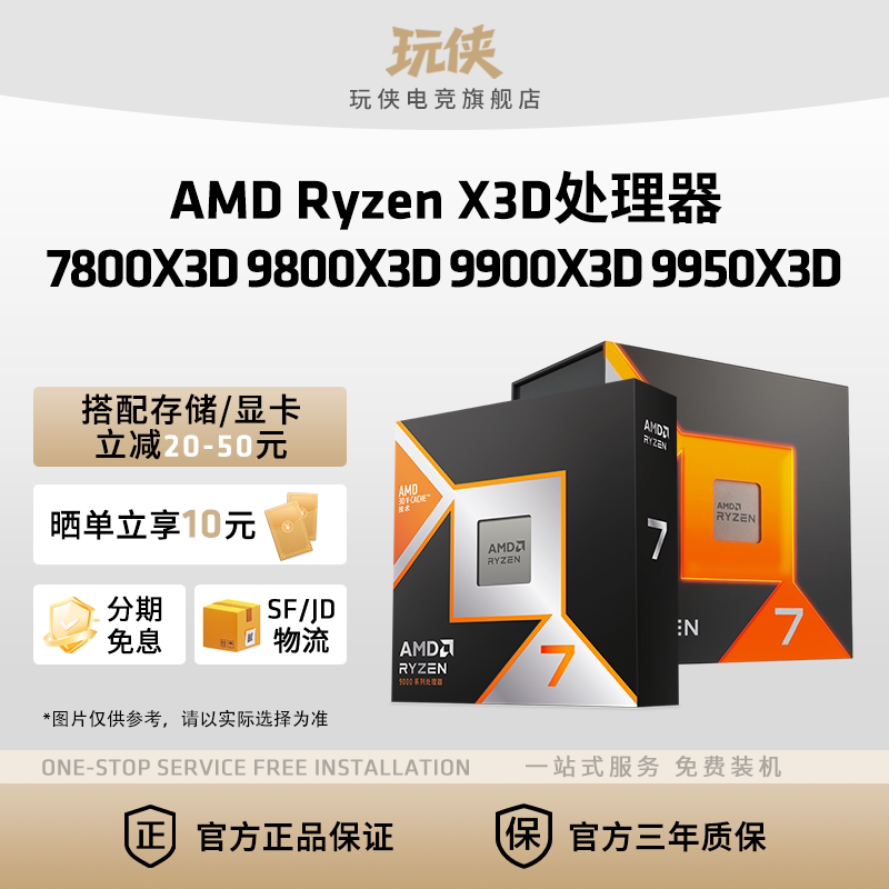 AMD锐龙7 7800X3D/9800X3D R9 9900X3D/9950X3D处理器盒装CPU AM5