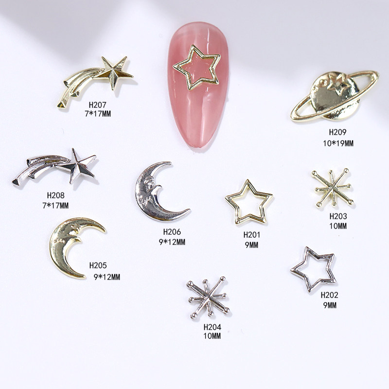 美甲星月饰品 星球守护系列 镂空星星月亮地球星芒小合金指甲饰品