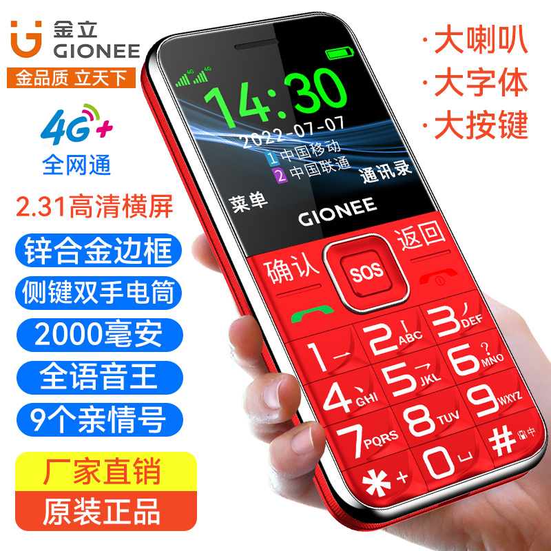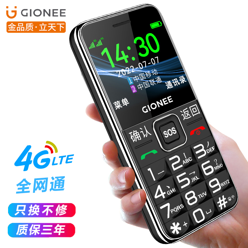 金立老人手机4G全网通超长待机老年机大字大声大按键直板学生备用功能机双卡双待