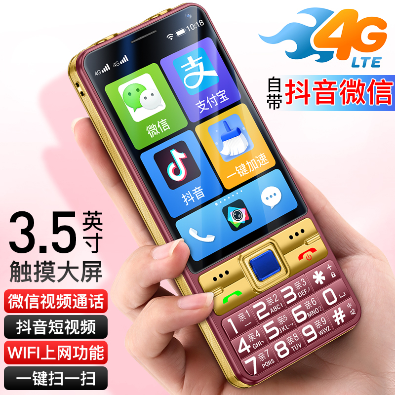 金立微信可视频抖音智能老人手机按键触摸屏长续航老年机4G全网通直板双卡双待便宜学生备用机