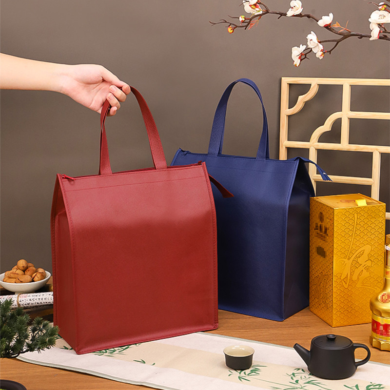 特大号加厚拉链封口无纺布手提中秋过年春节送礼烟白酒包装礼品袋