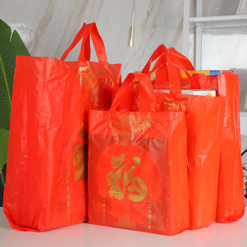 大中小号红色福字礼品袋 春节糖果烟洋白酒送礼包装塑料手提袋子