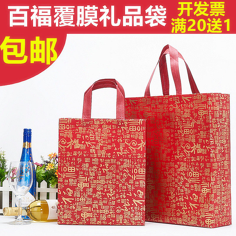 春节送礼袋礼品袋环保袋过年喜庆百福袋烟茶红酒洋酒袋手提袋包邮