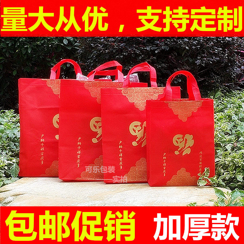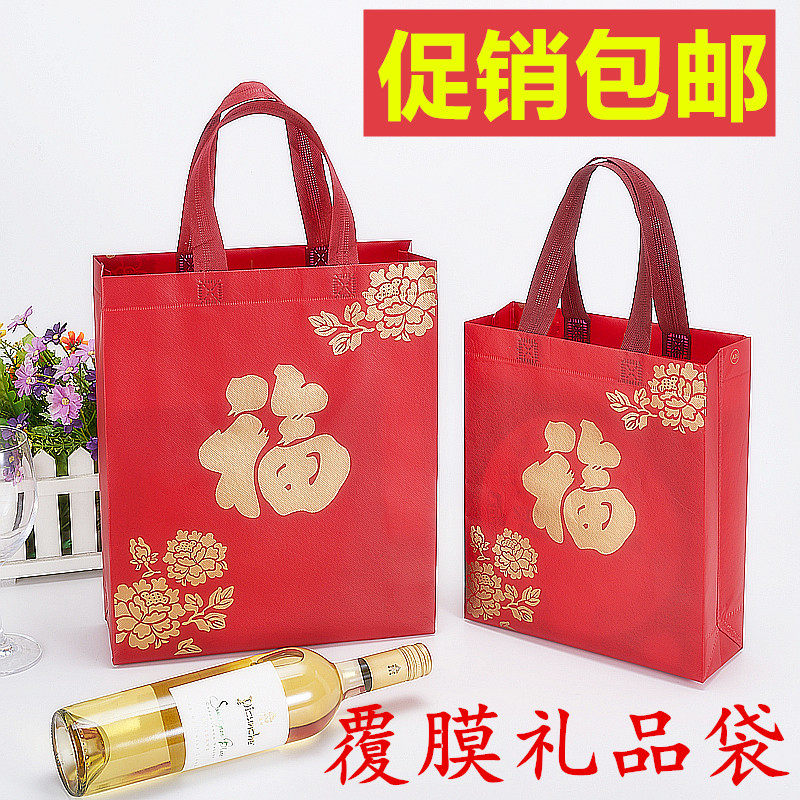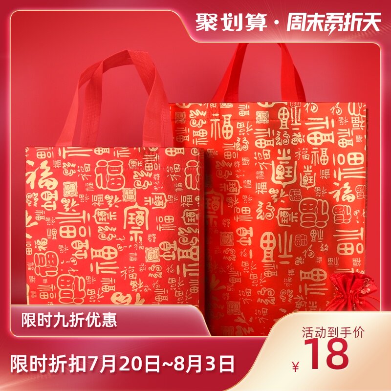 大红色加厚无纺布礼品袋送礼袋回礼袋烟茶酒春节送礼袋福字环保袋