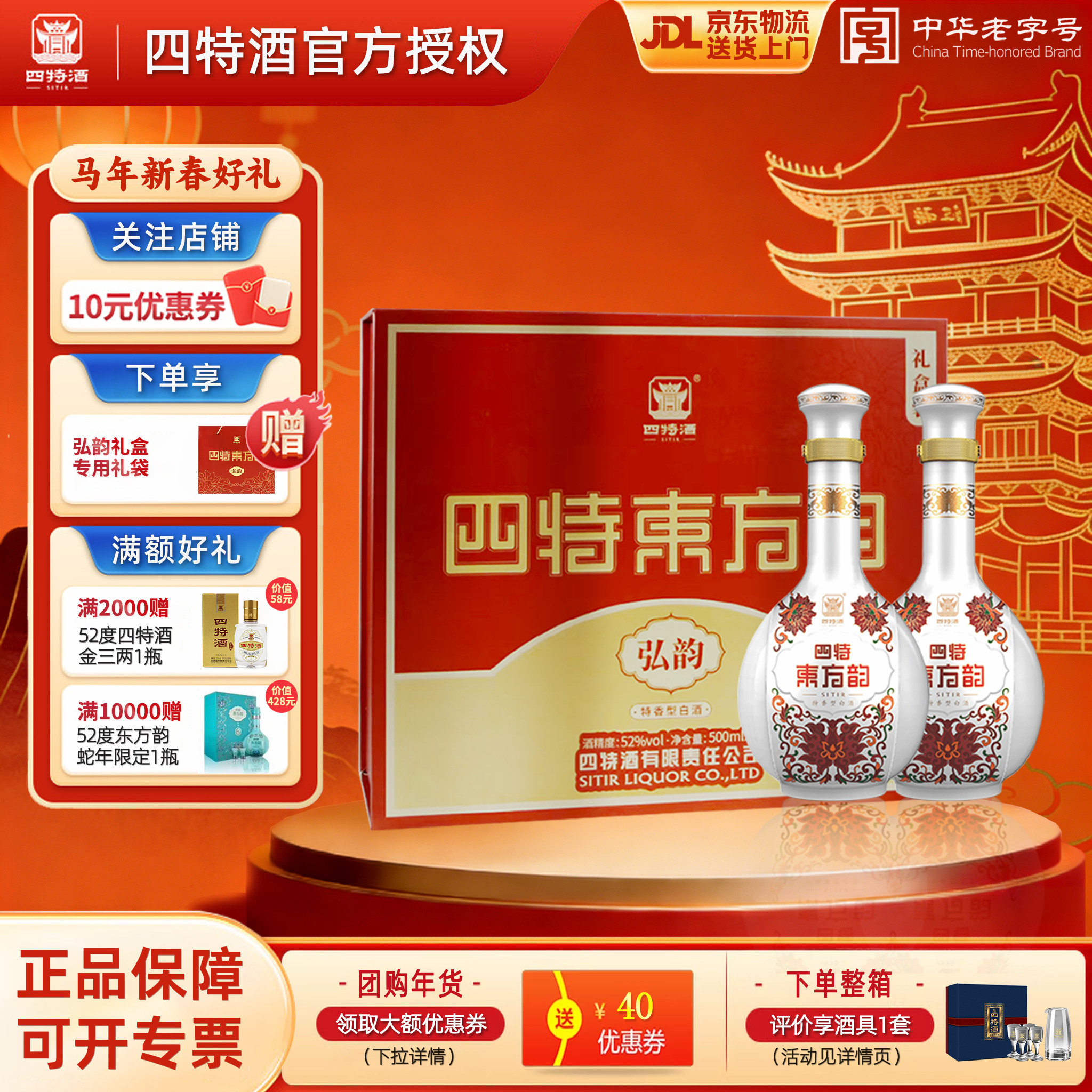 四特东方韵弘韵新版52度500ml*2双瓶礼盒装春节送礼品特香白酒