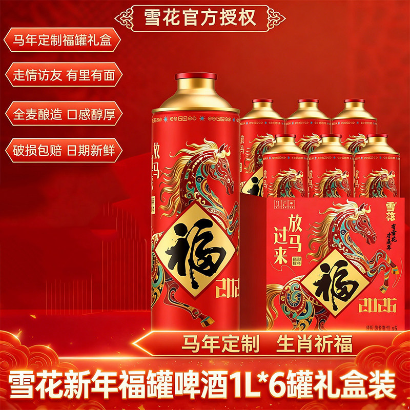 雪花啤酒福罐装全麦精酿啤酒1L*6罐礼盒装 春节新春礼物年货送礼