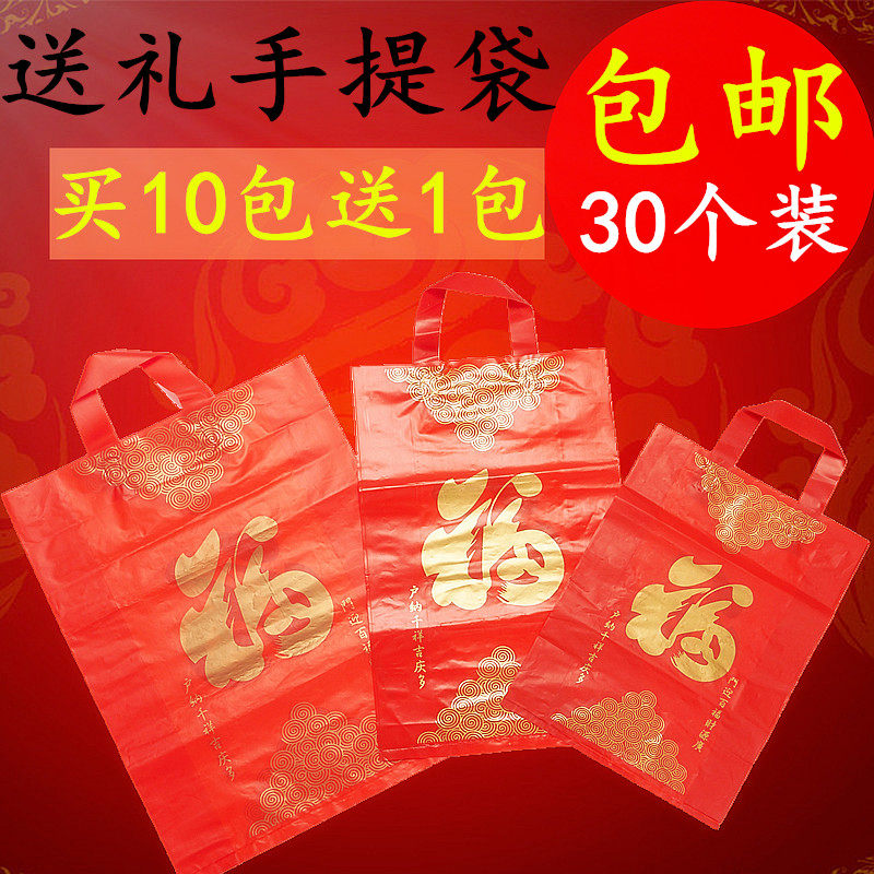 大中小号红色福字礼品袋春节过新年烟洋白酒送礼袋塑料手提回礼袋