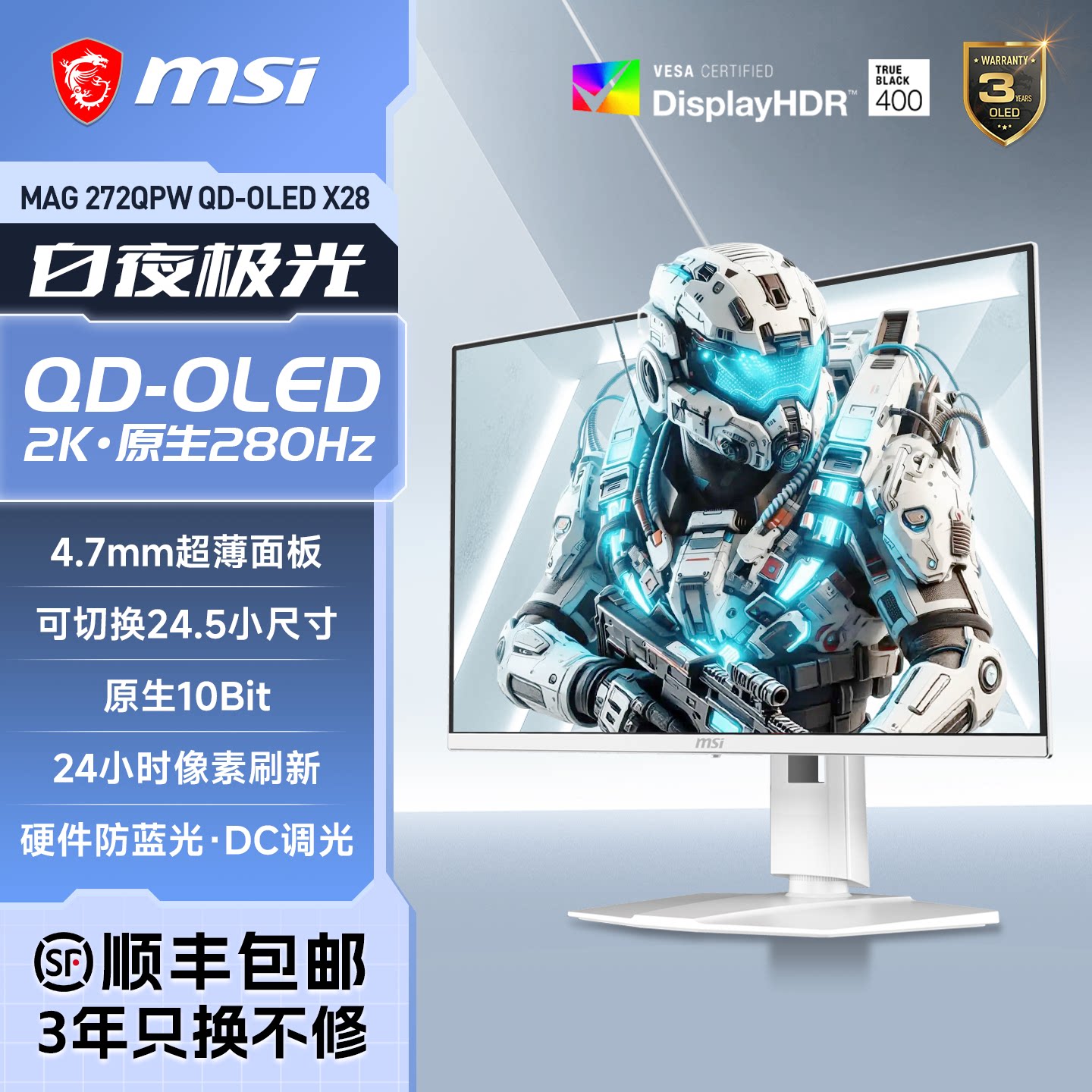 微星27英寸2K白色QD-OLED电竞280HZ电脑显示器MAG272QPWX28屏240