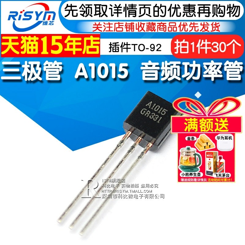 Risym 三极管 A1015 2SA1015 PNP 音频功率管 插件TO-92 30只