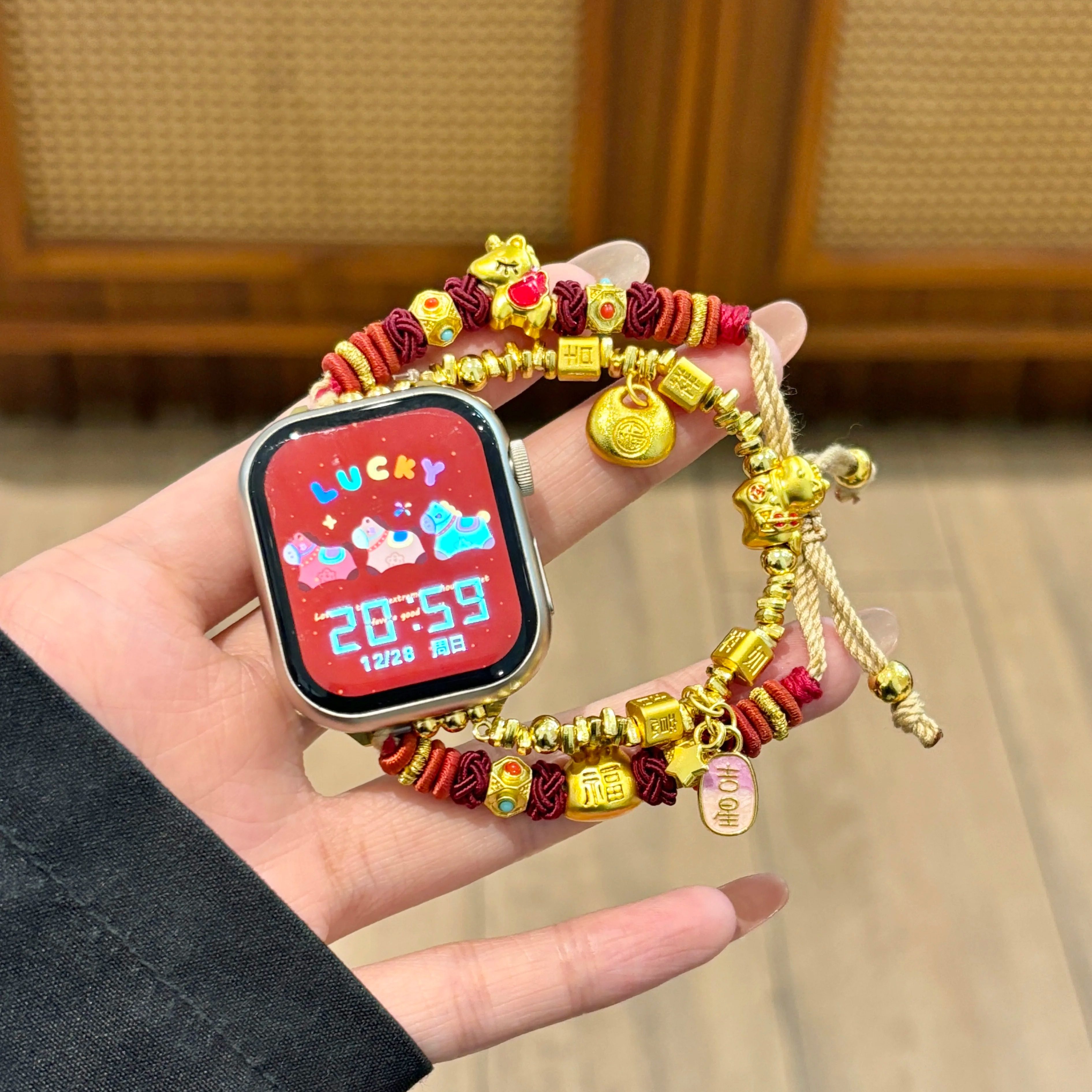 适用小米9Pro表带DIY编织手绳吉祥小马新年表带iwatchS11/10/9/8/7代se3女41mm华为Fit4秋冬D2红米65学生腕带