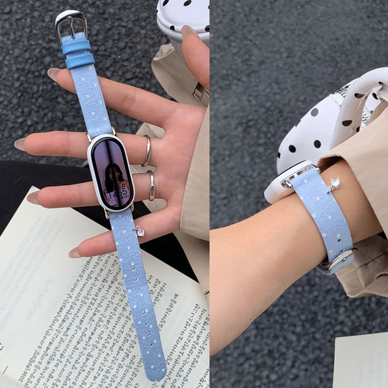 适用于小米手环10表带9/8韩系波点真皮表带小米watch S4 41mm/s3/s2女款新腕带Color2红米watch5/4/3运动