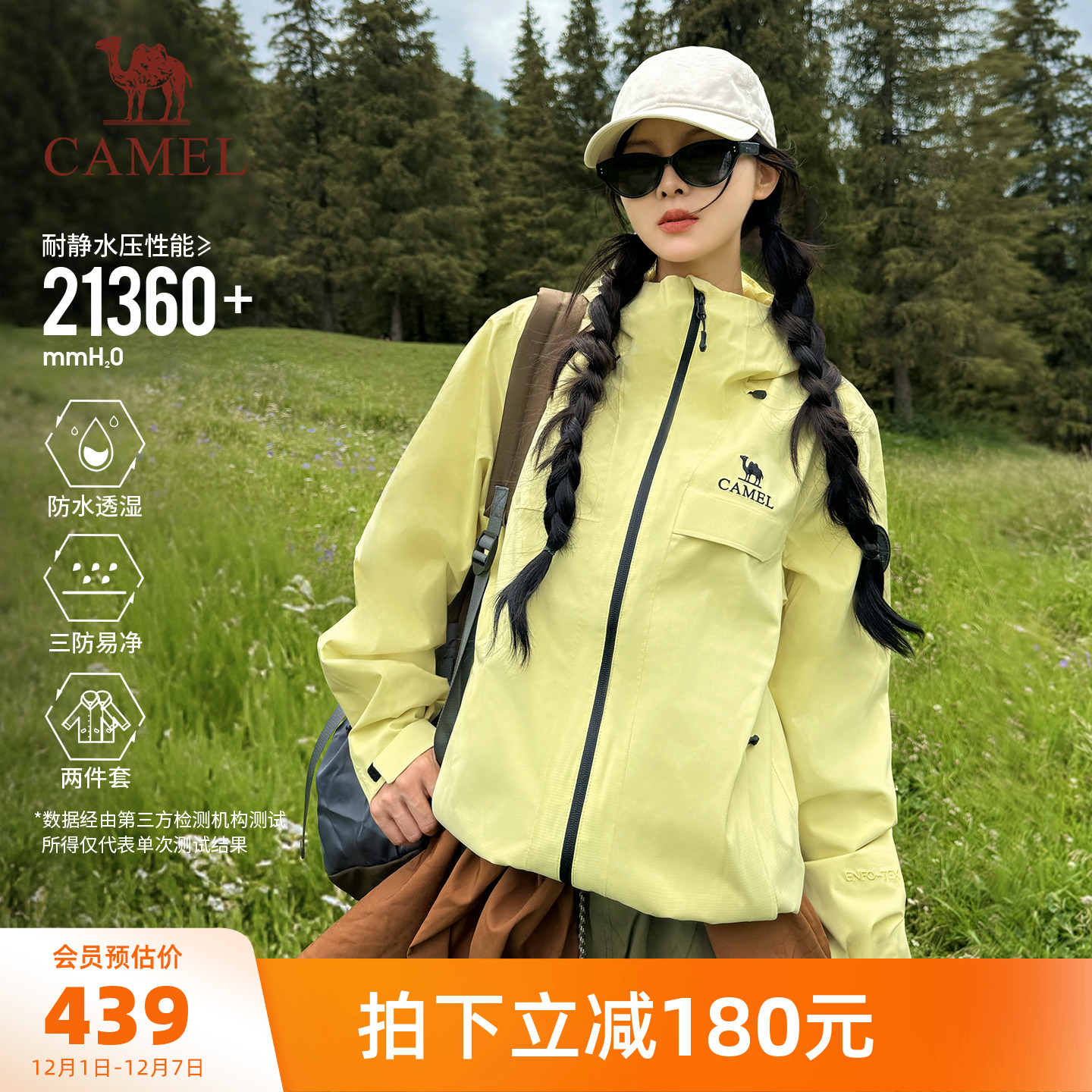 骆驼雨神三合一冲锋衣男女黄色外套2025冬季新款加绒加厚登山服装