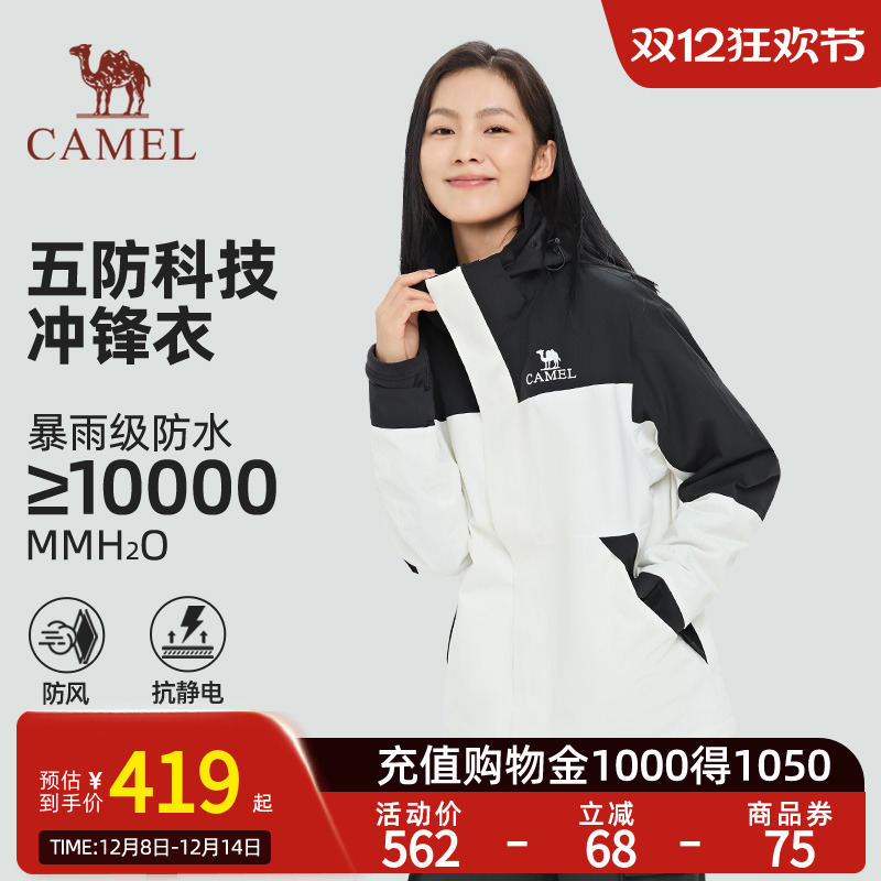 Camel骆驼户外冲锋衣三合一男女同款春秋加绒外套防风防水登山服