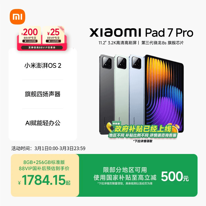 【政府补贴15%】小米平板电脑 Xiaomi Pad 8 Pro