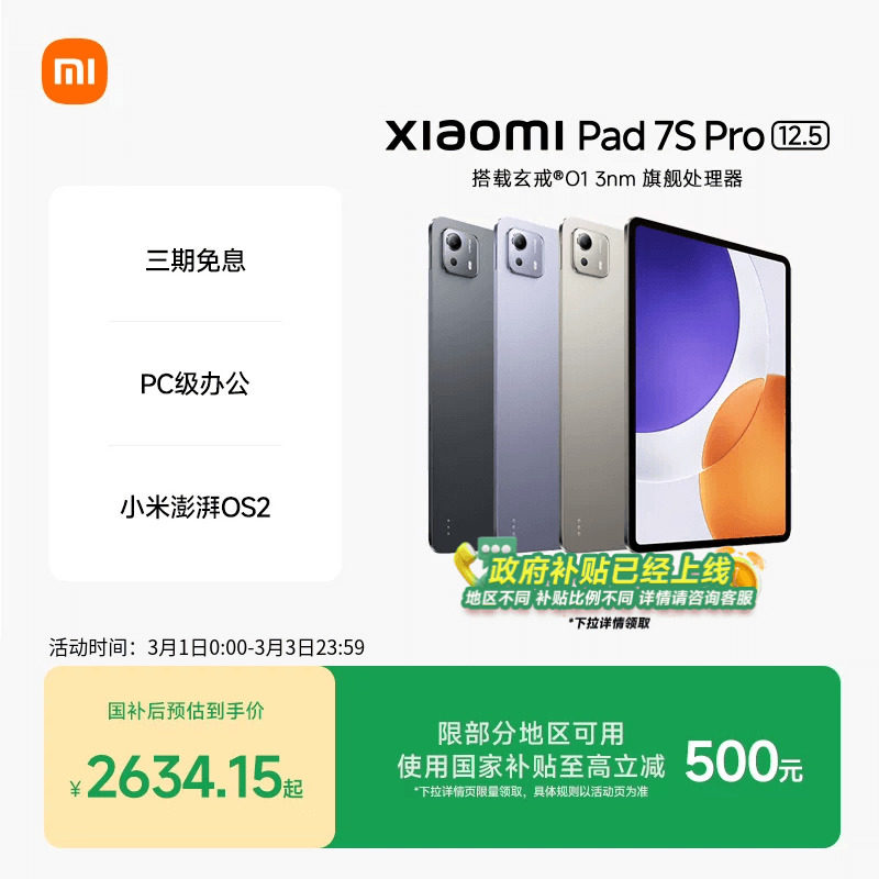 MIUI/小米 Xiaomi Pad 7S Pro 12.5 平板 12.5英寸高清护眼屏2025款新品学生学习娱乐平板电脑 百亿补贴