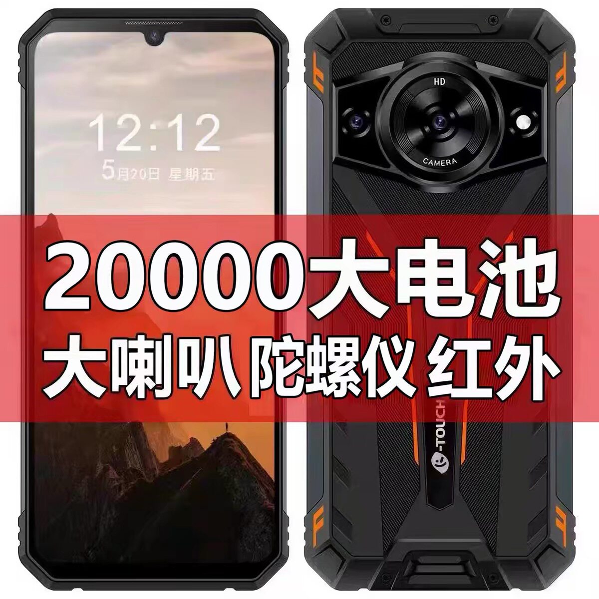 外卖骑手电霸三防智能手机5G防水防摔夜视22000毫安长待机夜视NFC
