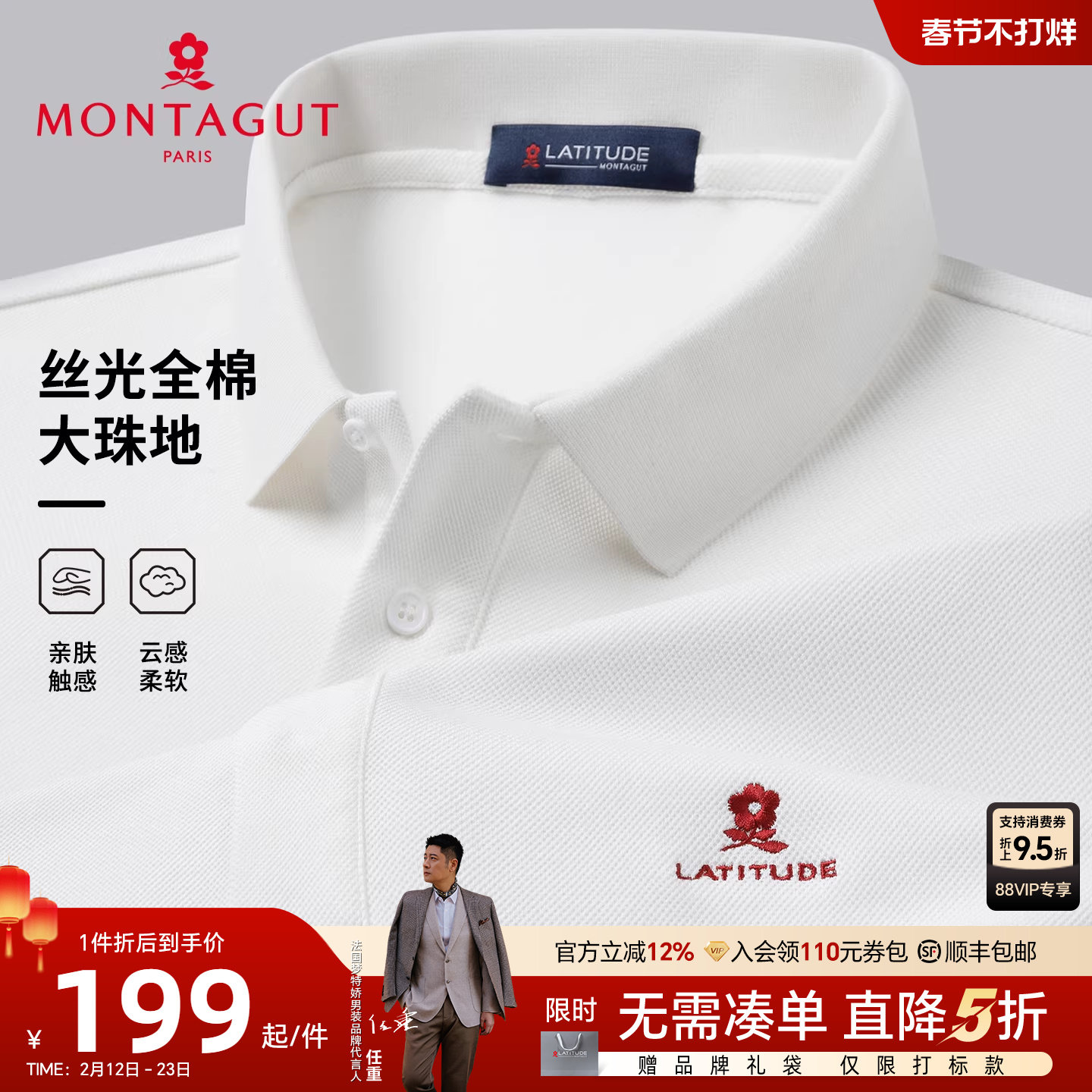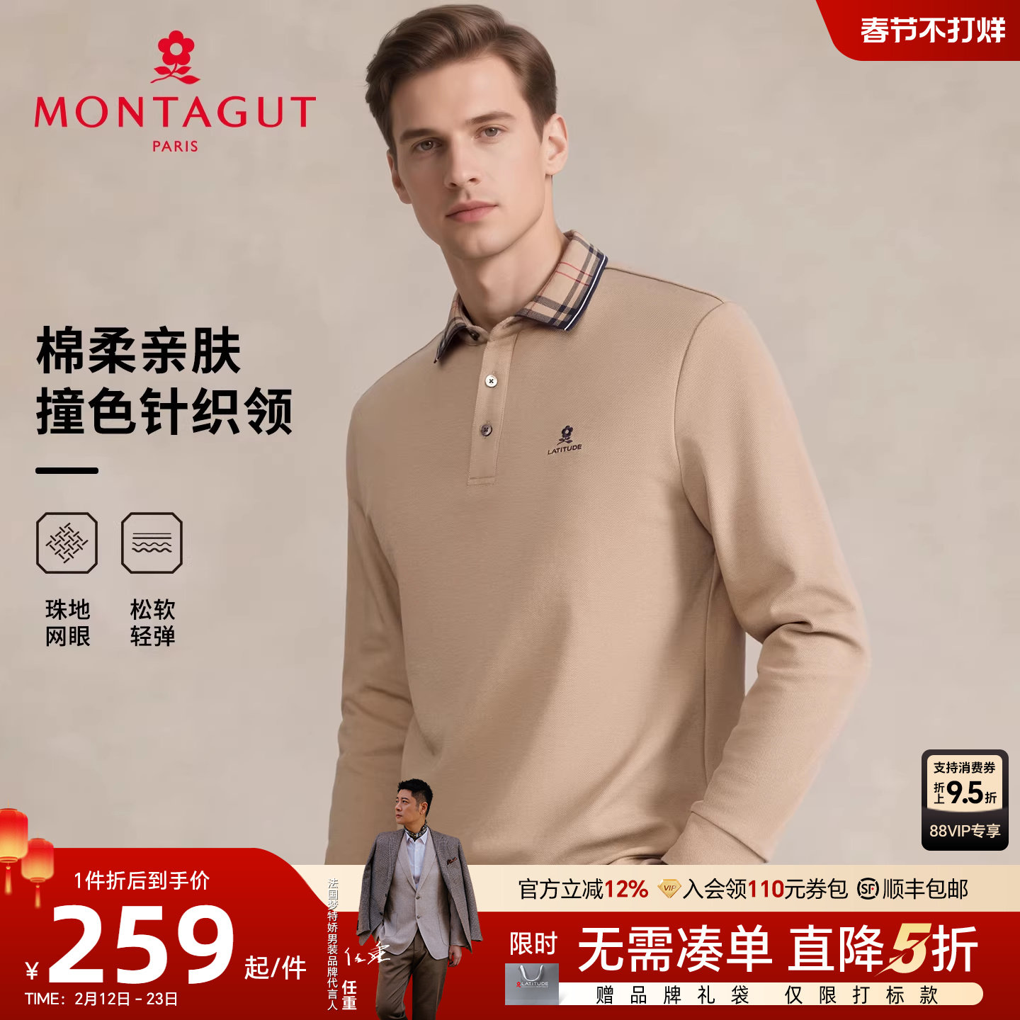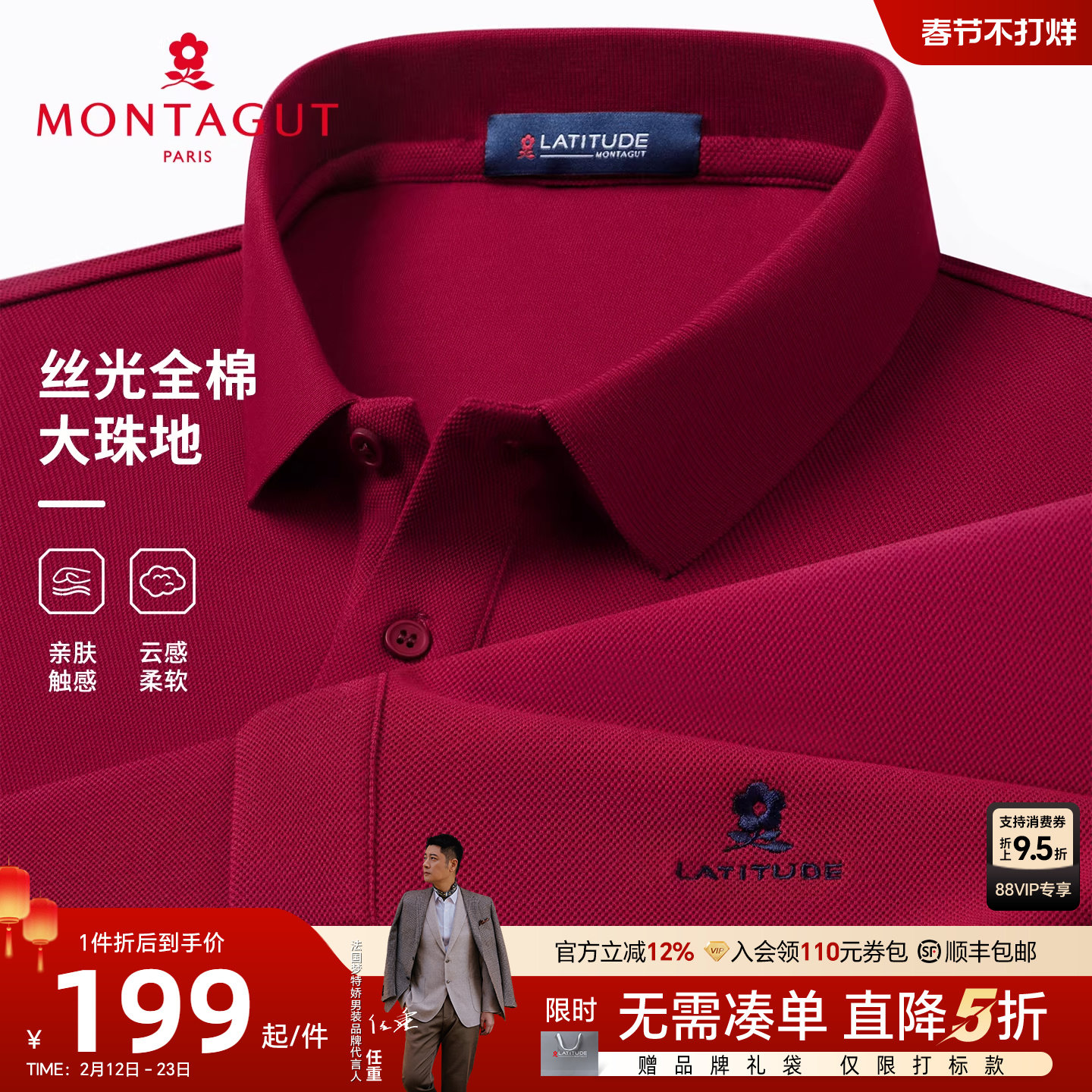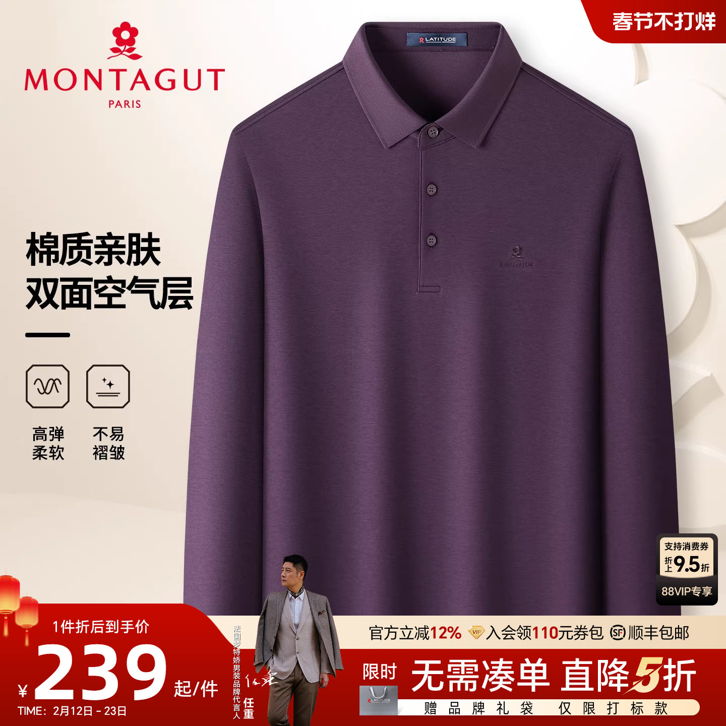 [100%长绒棉]梦特娇男士长袖Polo衫翻领春装丝光纯棉T恤爸爸婚宴J