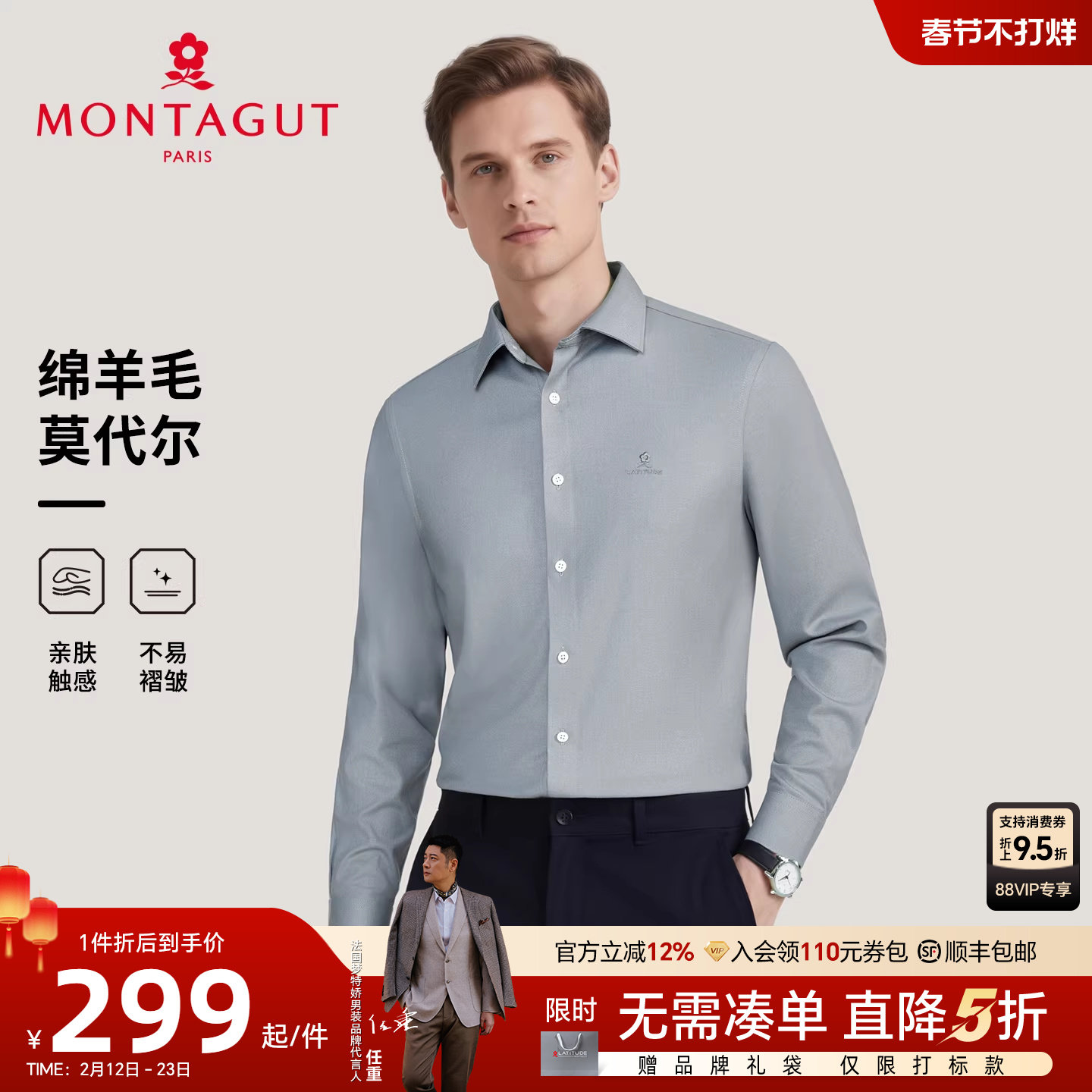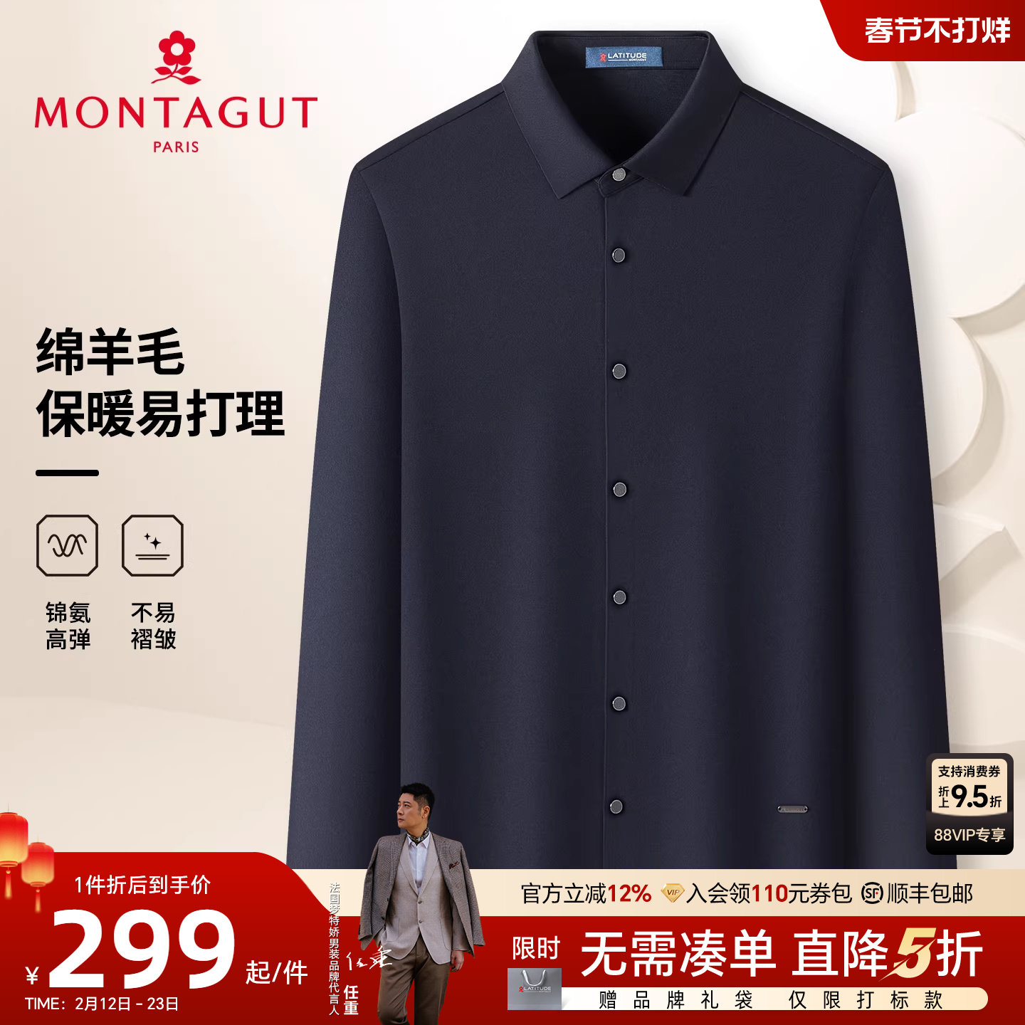 [羊毛莫代尔]梦特娇男士羊毛衬衫春装商务中年长袖衬衣免烫抗皱J