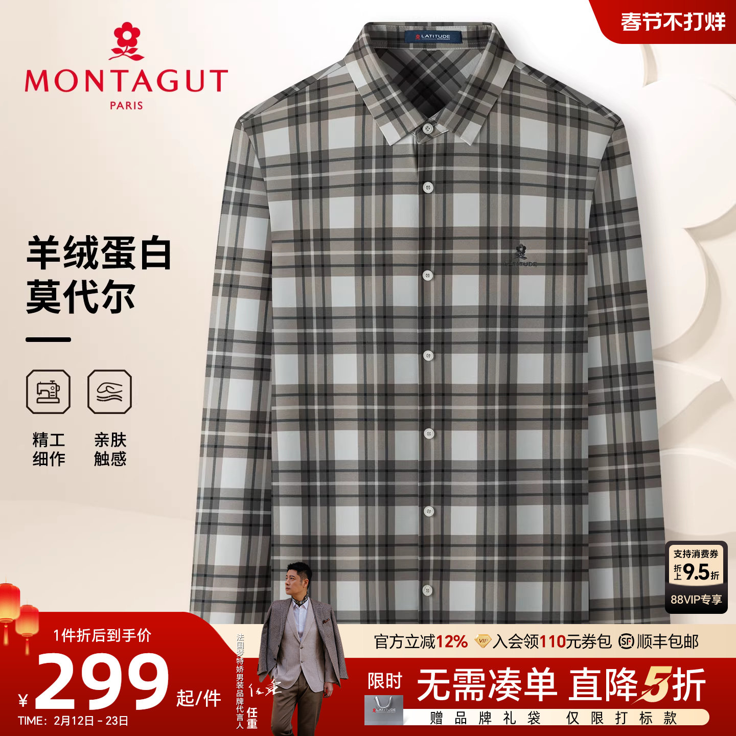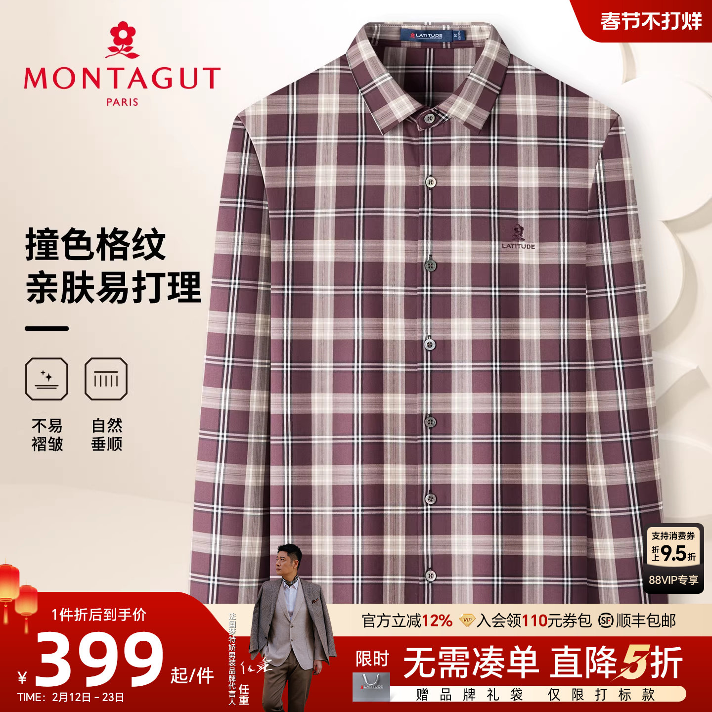 [羊绒蛋白暖感]梦特娇男士衬衫26春装中年长袖格纹衬衣商务抗皱J