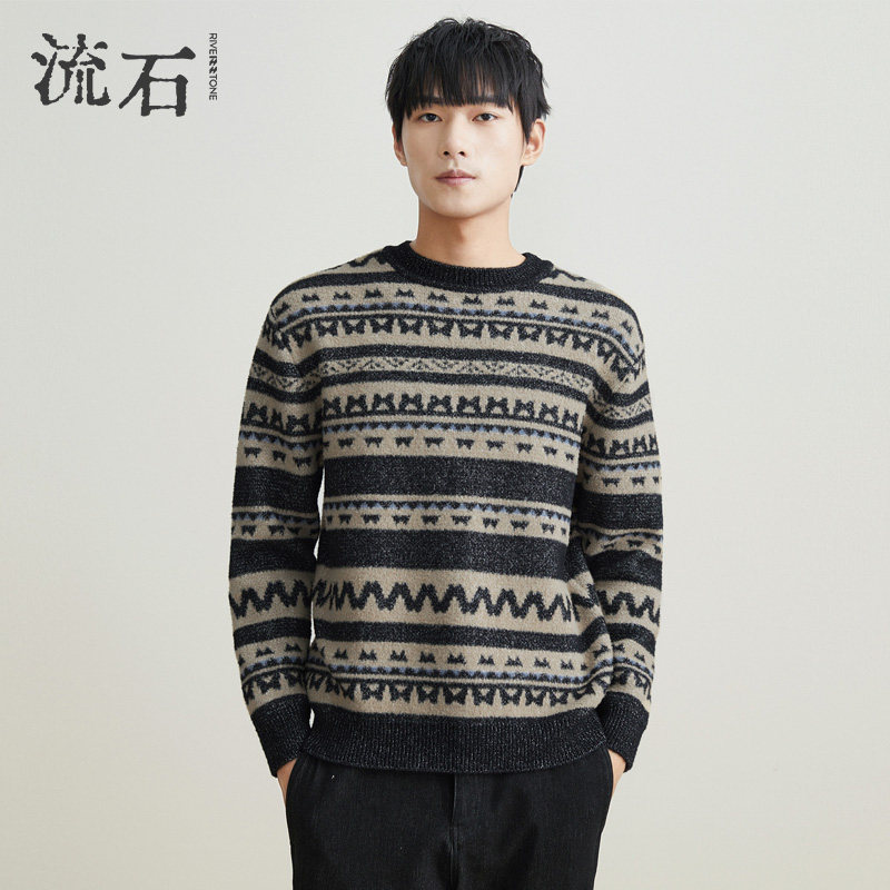 流石男装春装设计感时尚高端毛衣2026年春季新款长袖复古针织衫潮