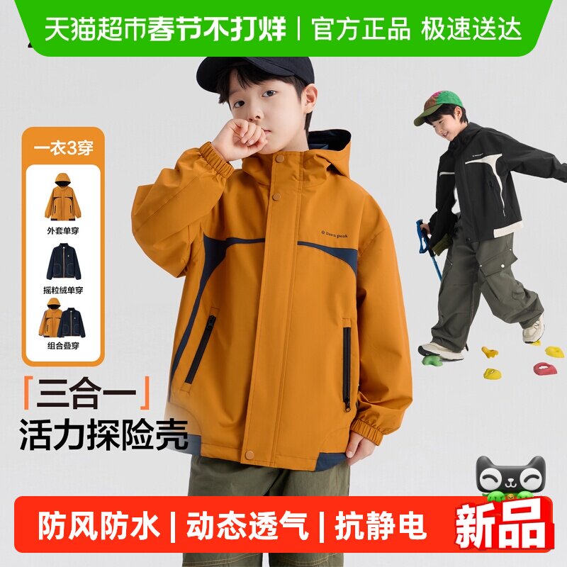 小象汉姆童装男童冲锋外套2026春装新品儿童三合一防水户外登山服