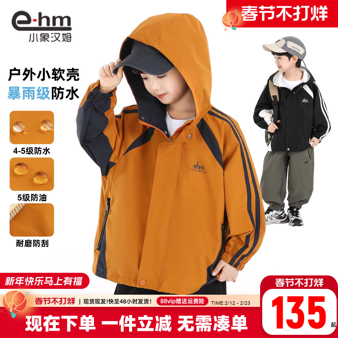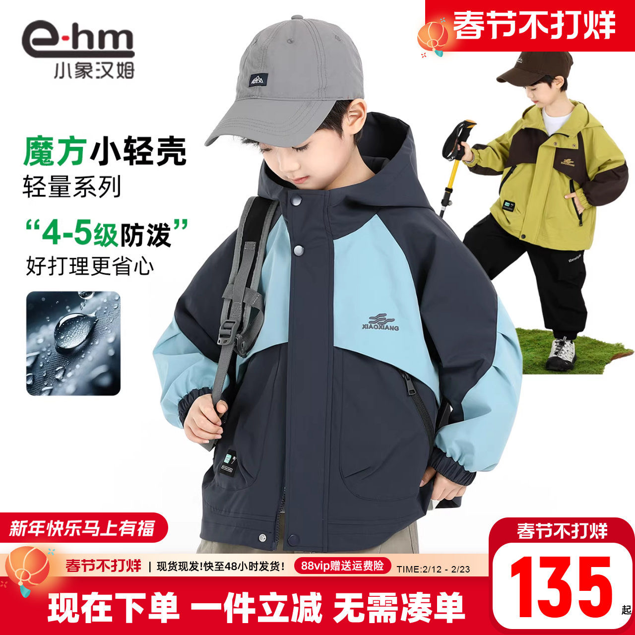 小象汉姆童装男童外套冲锋衣2026春装新款儿童户外防水衣拉链衫
