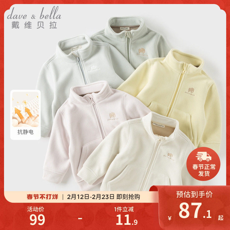 戴维贝拉儿童摇粒绒外套春装新款男童女童抗静电内胆宝宝A类上衣