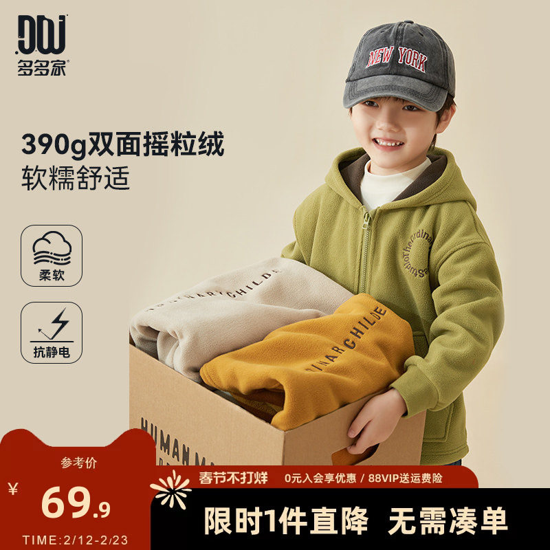 多多家男童摇粒绒外套春秋款2025新款儿童春春装中大童棉服外套潮