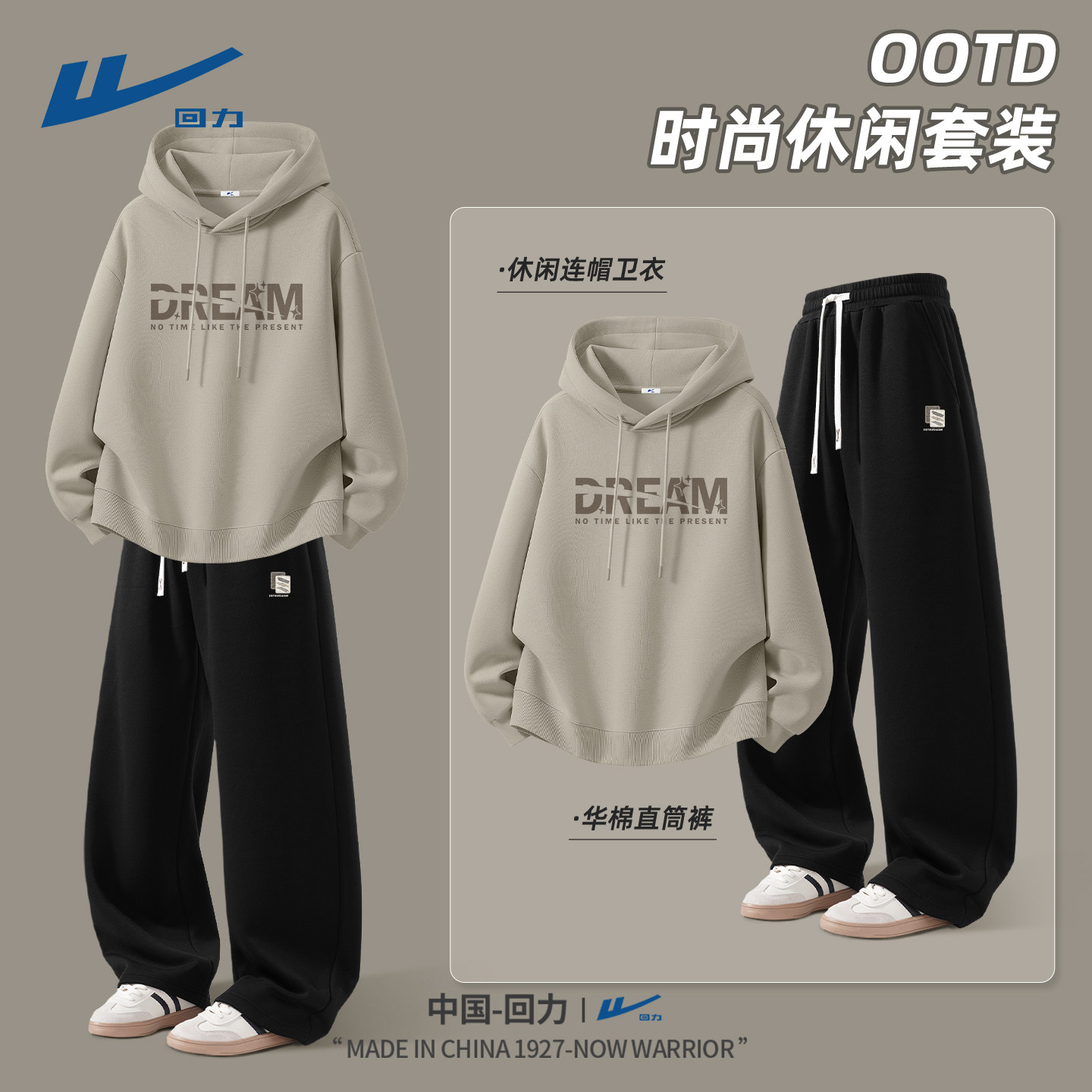 回力套装男春装时髦美式百搭卫衣连帽休闲大学生衣服男款一整套C