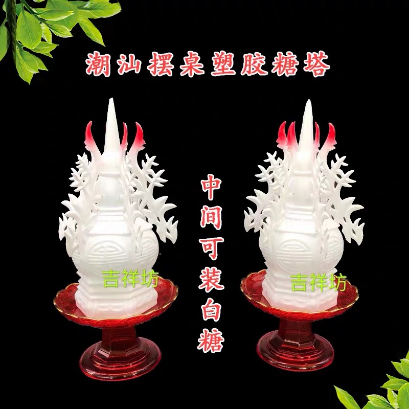 潮汕习俗拜老爷摆桌用品塑料糖塔 特色工艺仿真塑胶白糖塔供财神