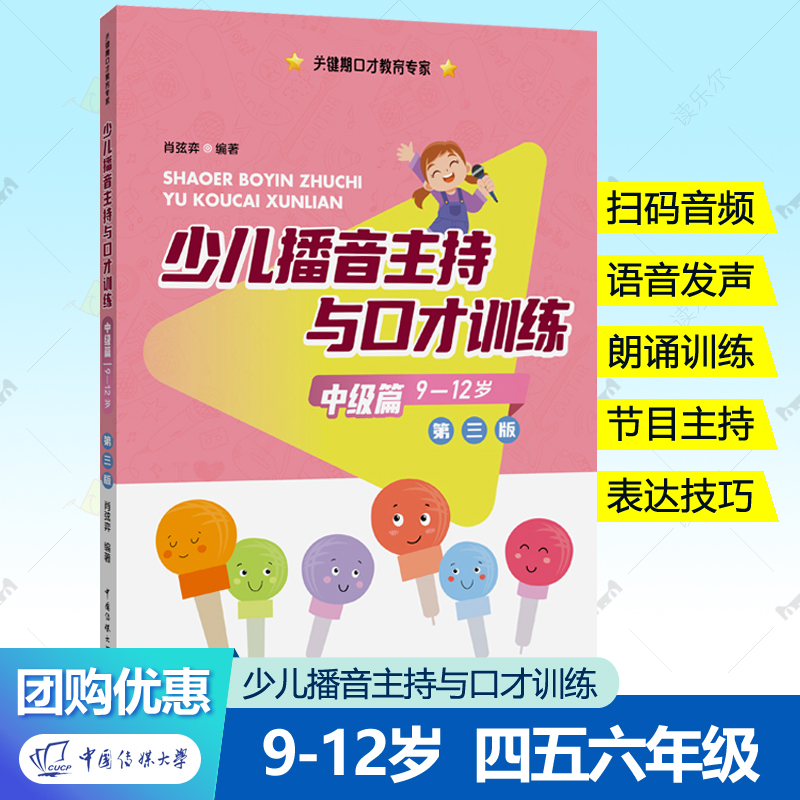 少儿播音主持与口才训练中级篇9-12岁第3版 四五六年级小学生口才训练语音发声朗诵即兴口语表达演讲曲艺表演节目主持普通话教材书