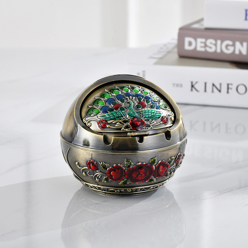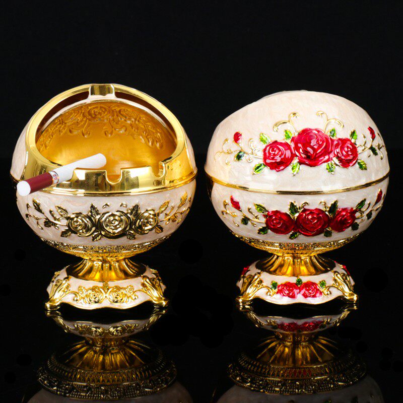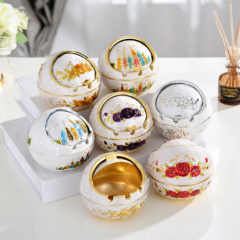 欧式复古创意锌合金球形带盖卧室可爱烟灰缸时尚个性家居防风烟盅